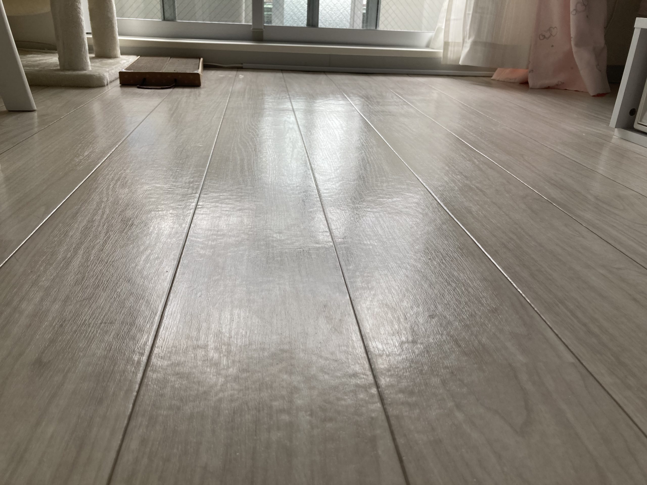 ここの床はクッションフロアなので大してピカピカにはならないですが、それでもつやは出ました。