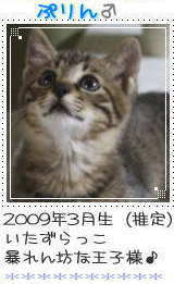 昔私がやってた猫ブログで仲良くさせてもらっていた方の家に迷い込んできた子猫。迷い込んでいった家ではすでに8匹も猫を飼っていたので飼えないとのことで、引き取りました。
